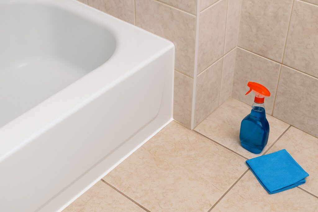 - Bathrooms: Scrub shower/tub, sinks, toilet, grout, fixtures, baseboards